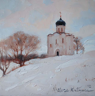 This is one of the most beautiful churches in Russia. Painting this little piece was like coming back to my homeland. I could feel the smell of snow and Russian winter.