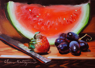 This is my first watermelon this season. It is very delicious and refreshing. Also it was very refreshing to paint.